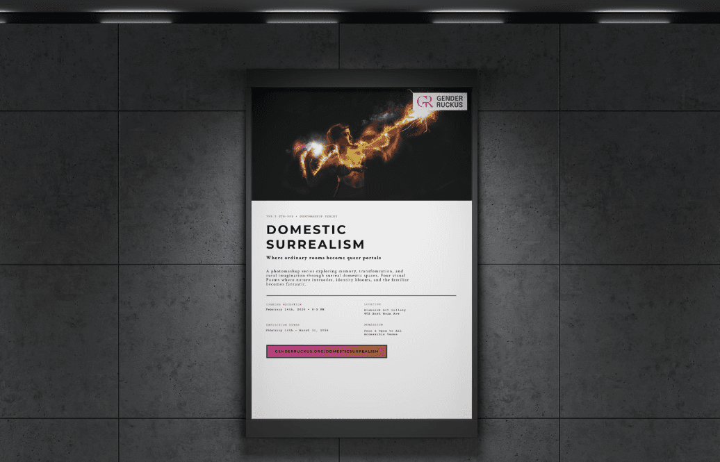 A four-part visual exploration where domestic interiors become surreal thresholds. Each piece transforms familiar spaces into portals of queer imagination—where nature intrudes, memory blooms, and identity reshapes the room.